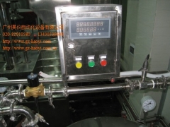 详细信息 自动补水流量计广州公司|定量加水流量计控制器、泵阀定量注水流量计设备 怎样可以实现自动控制自来水定量装置、纯水用什么流量计可以计量,而且可以实现定量值的自动控制;液体的定量控制。。。。。。 目前市面上的流量计都是以PLC配套,成本过高,使得企业成本提高。对企业来说是一笔大的设备成本投资,现在市场竞争激烈。减小投资成本是企业最终目的。广州昊仪自动化设备有限公司为企业量身定做的定量控制加水设备,大大节省了成本,提高生产效率。得到广大企业的好评! 对于不同的工况环境需选择不同的设备,如需定量控制加水流量设备欢迎来电垂询、洽谈!TEL:020-82010580/28075016,13430339698 FAX:020-82010581 QQ:121519822 http://www.gz-haoyi.com/ 一、定量加水方案总体说明 本方案主要根据流量计反馈给定量控制仪(HYKZDL/A-H2L1T1K3V0)的脉冲或电流流量信号,当流量累计流量达到设定的数值(定量值),定量控制仪会给电磁阀门或泵一个开关信号,已达到对阀门、泵的启动和关闭控制。实现对加料的自动和手动控制。该系统精度高,操作简单,可现场校准。二、定量加水系统组成 流量传感器+泵或电磁阀门+定量控制柜三、定量加水功能说明 1. 流量传感器:流量传感器主要是采集流量信号,反馈给定量控制仪。 2. 定量控制柜:主要有定量控制仪表+电柜组成。电控柜功能说明:(1)定量控制仪可任意设置所需要加入的水量(定量值)定量控制仪具开关量信号输出,当设定好定量值,仪表根据流量传感器反馈的流量信号,当达到设定值后,自动关闭泵或阀门。带有瞬时流量,累计流量,加入量显示功能控制仪带有面板清零装置。广州定量加水流量计 ,广州自动加水流量计,广州反应斧定量加水流量计 洗涤剂定量灌装广州 广州定量配料系统 广州纯净水定量控制设备 广州定量控制仪 广州热水开水定量控制流量计(2)恢复按键:既在突然断电或其他原因造成定量控制中途停止时,按恢复键可以继续加入未完成的定量值。(3)停止按键:遇到紧急情况,可按此键停止阀门(4)启动按键:每次操作完成后,按此键可以将定量值清零,重新开始下一批次操作。四、定量加水订货须知 1、选择合适的流量计:告之测量介质名称、测量管口径、工作压力和温度、流量范围或其他要求,以便选型; 2、说明控制的要求:如每次定量值的大小、每天控制的次数、是否每次控制的值都一样以及其他要求; 3、选择断流设备:如已有断流设备请告之其工作电源和功率,如需要提供断流设备也可以。在此建议断流设备请选择电磁阀或气动阀 请联系 广州昊仪自动化设备有限公司 TEL:020-82010580 28075016 13430339698 FAX:020-82010581 http://www.gz-haoyi.com/ 邮箱:13430339698@163.com QQ:121519822